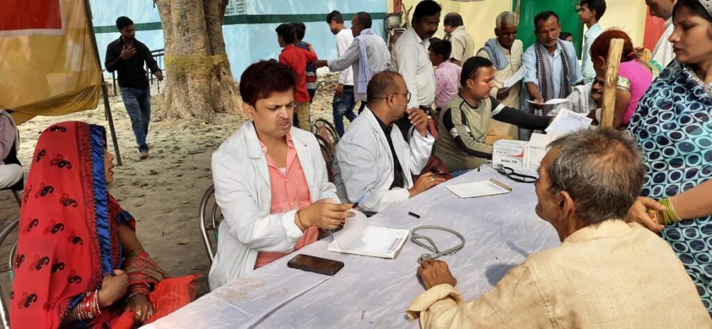 तमकुही राज के सरया बुजुर्ग के शिव मंदिर प्रांगण में लगा निशुल्क मेडिकल शिविर