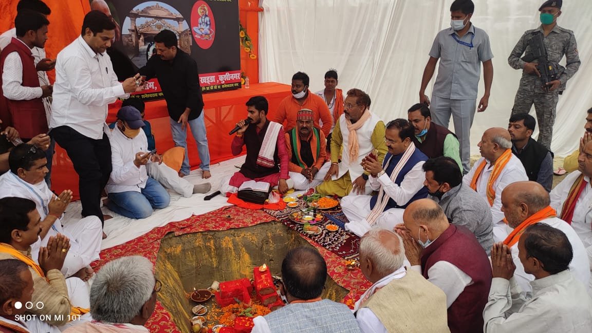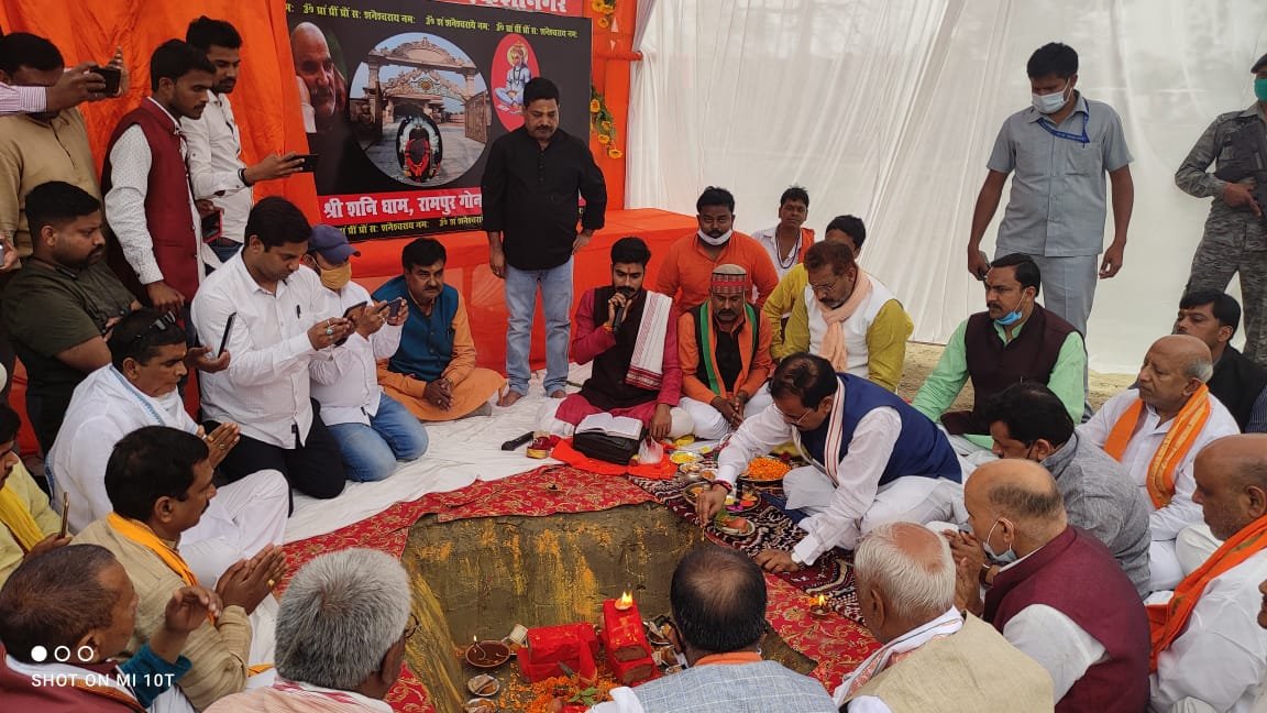 मा0 उप मुख्य मंत्री जी द्वारा सभा स्थल पर निर्माणाधीन शनिधाम मंदिर एवं मदरहवाँ पुल का शिलान्यास/ भूमि पूजन भी किया गया।