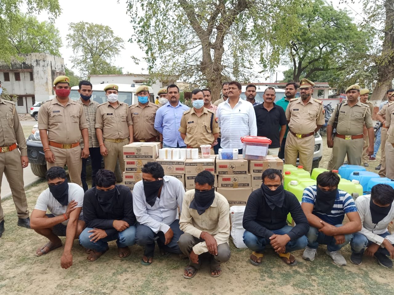 एसपी ने प्रेसवार्ता कर पूरे मामले की जानकारी दी। उन्होंने बताया कि सूचना मिली थी कि जिले में एक स्थान पर अवैध रूप से अपमिश्रित शराब बनाई जा रही है। जिसके बाद स्वाट व थाना पुलिस ने टीम बनाकर पूरे मामले की जांच शुरू की। सही जानकारी मिलने पर टीमों ने मौके पर छापेमारी की। जहां टीम को देख भगदड़ मच गई। पुलिस ने मौके से सात आरोपियों को पकड़ लिया जबकि एक आरोपी फरार हो गया।