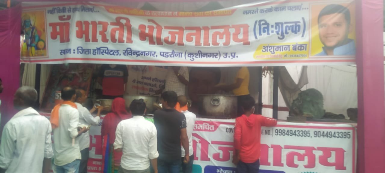 पडरौना-देश आजकल कोरोना महामारी से जूझ रहा है जिसका असर सबसे ज्यादा गरीब लोगों के परिवार पर पड़ रहा है जिसमे लोग खाने पीने से लेकर ईलाज के लिए परेशानी का सामना करना पड़ रहा है।जिसको देखते हुए एक युवा समाज सेवी अंशुमान बंका ने जिला अस्पताल पडरौना के परिसर में ईलाज करा रहे लोगो के लिए आज बहुत दिनों से माँ भारती भोजनालय जो कि बिल्कुल निशुल्क हैं सभी लोगो के लिए खाना उपलब्ध करा रहे हैं।इस मुश्किल घड़ी में लोगो को खाने के पैसे से बचा रहे हैं उनको निशुल्क भोजन करा करके जिसकी चारो तरफ प्रशंशा हो रही है।