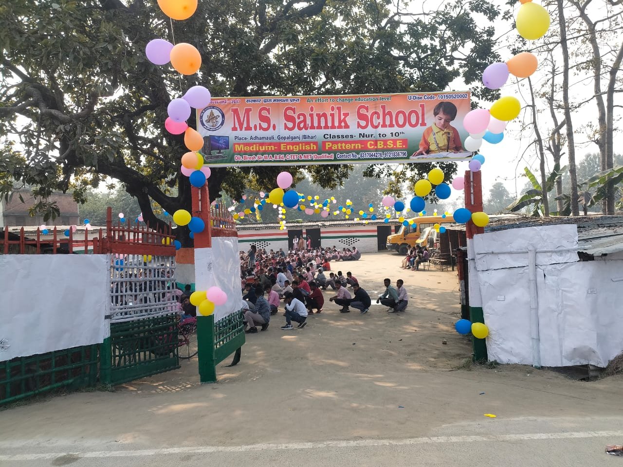 वही होनहार बच्चों को प्रोत्साहित करने के लिए उनका सम्मान भी किया गया विद्यालय के को डायरेक्टर बालेश्वर चौहान ने कहा कि विद्यालय में बच्चों की सुख सुविधा के लिए हर प्रकार की व्यवस्था उपलब्ध है और बच्चे समय से स्कूल आ सके उसके लिए वाहन की भी पूरी व्यवस्था एम एस सैनिक स्कूल के द्वारा उपलब्ध कराया जा चुका है किसी प्रकार की कोई कमी नहीं है। बच्चों का मनोबल बढ़ाने के लिए बच्चों को ऐतिहासिक जगहों पर सैर कराया जाता है हर वर्ष सांस्कृतिक कार्यक्रम का आयोजन किया जाता है ताकि बच्चों का उत्साह और मनोबल बढ़े। जिसमें विद्यालय परिवार के समस्त टीचरों का खासकर राहुल कुमार द्विवेदी का भरपूर सहयोग और मार्गदर्शन मिलता है।