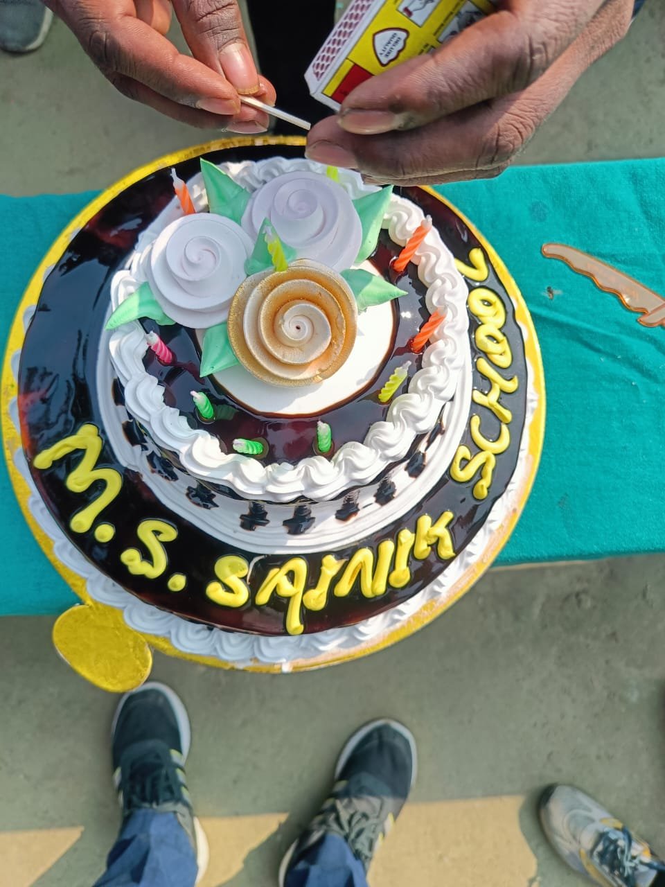 डिबनी बाजार (तमकुही राज)- हर वर्ष की भाती इस वर्ष भी एम एस सैनिक स्कूल के स्थापना दिवस के अवसर पर विद्यालय परिवार के द्वारा केक काटकर मनाया गया
