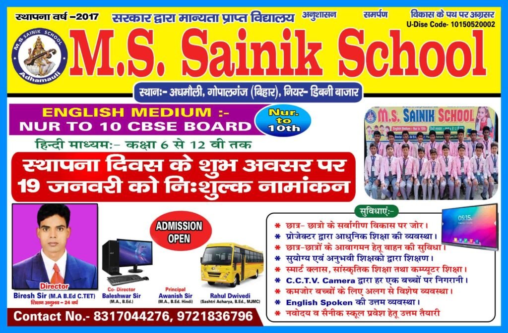 एम एस सैनिक स्कूल का स्थापना दिवस धूमधाम से मनाया गया वार्षिकोत्सव के अवसर पर बच्चों का हुआ निःशुल्क...